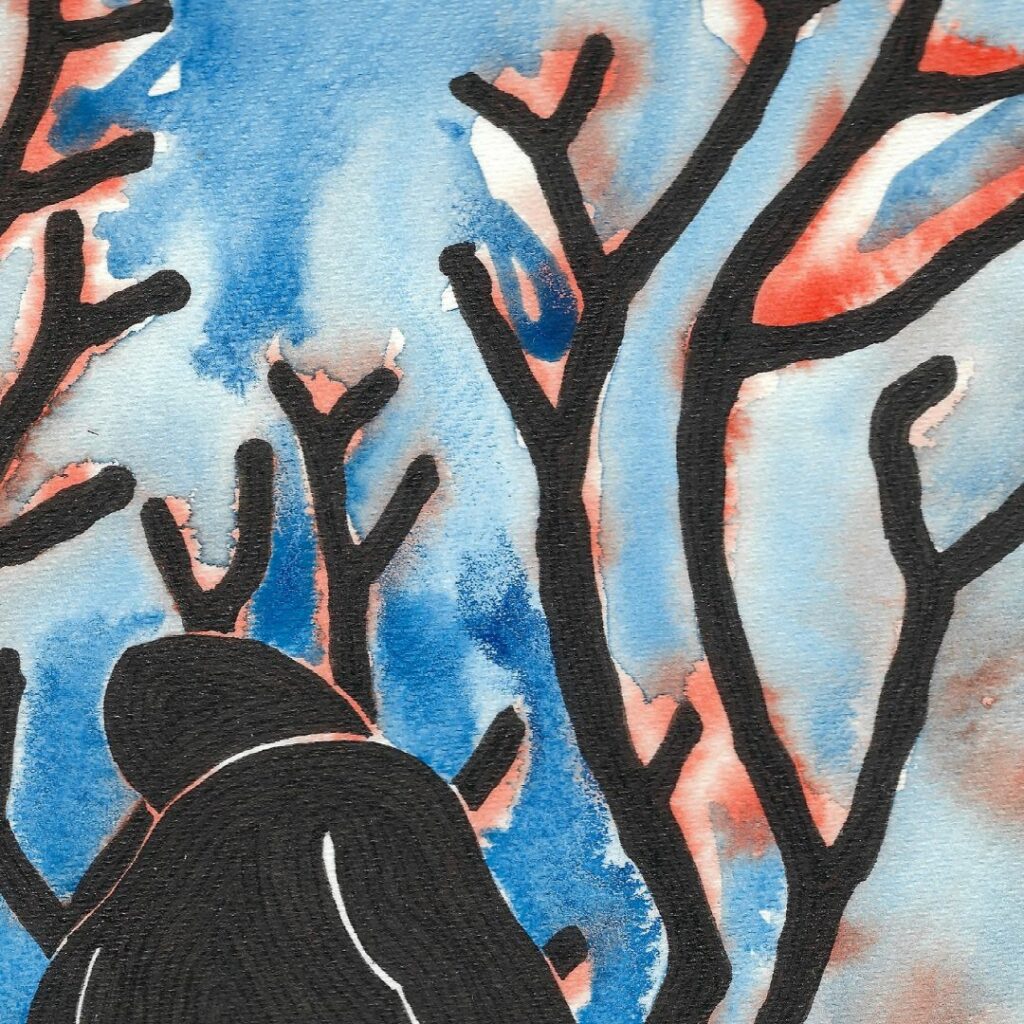Après Wild Mama n°1, Wild Mama n°2 est venue confirmer l’élan, avec les mêmes techniques : encre de Chine déposée au stylo tubulaire, et aquarelle.