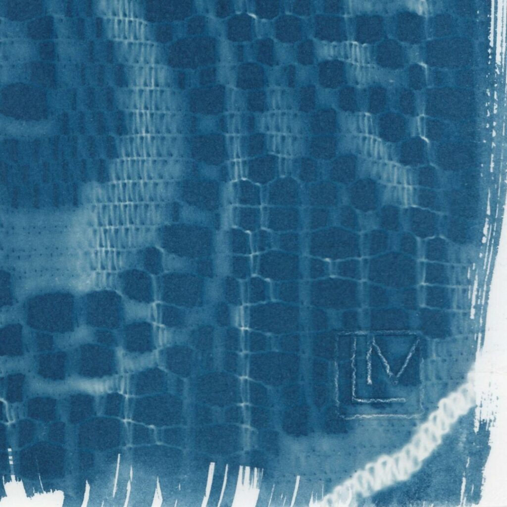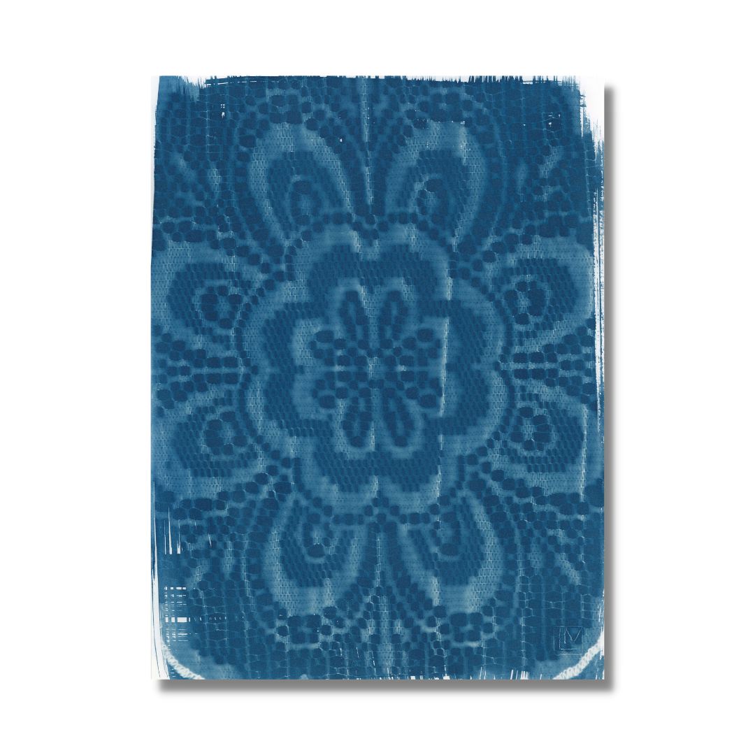 Ici, un de mes premiers tirages au cyanotype de napperon ancien (« doily » en anglais).