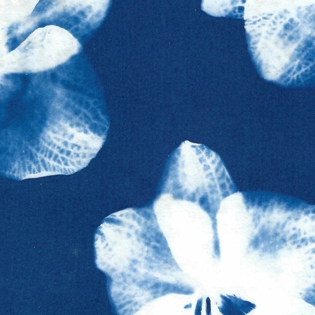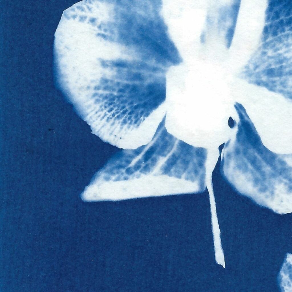 Remontant le temps pour me connecter à ce XIXème siècle bouillonnant qui m’est cher, j’exploite le procédé du cyanotype à la manière d’Anna Atkins (1799-1871). Dans mes œuvres, la plante, née une première fois de la lumière, se révèle à nouveau dans la confidence de ses détails, grâce au contraste poussé à l’extrême par la saturation des sels de fer. Ces cyanotypes végétaux, à la fois puissants et intimes, nous rappellent l’essence de notre vitalité, notre propre origine lumineuse.